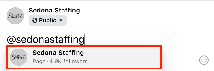 - Tag our page in your caption by typing @sedonastaffing.