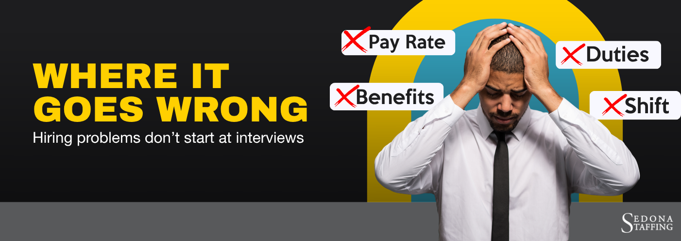 At Sedona Staffing, our recruiters spend a meaningful part of their day on conversations most people never see. That includes asking employers gentle but direct questions about which criteria are truly essential, which are preferences that could flex, and which are assumptions carried forward from earlier searches. We are not trying to talk anyone into lowering their standards. We are trying to help employers see the full range of what is available so they can make the call with clear information. The best hires almost always come from a calibrated search, not a perfect one. Our job is to help employers get there faster, without judgment about how the search started out.
